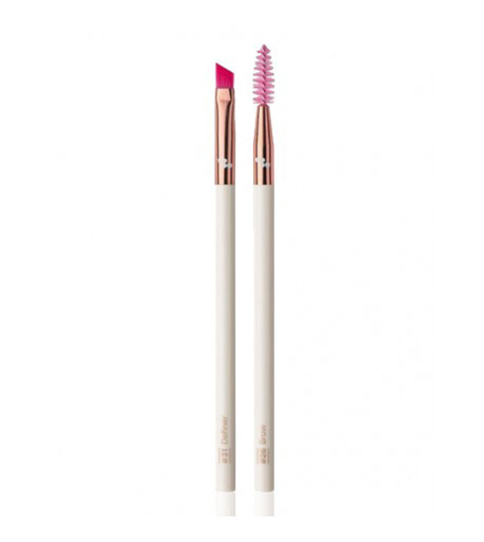 Enthält einen abgewinkelten Pinsel zum Auftragen von Augenbrauenschatten und für mehr Dichte.