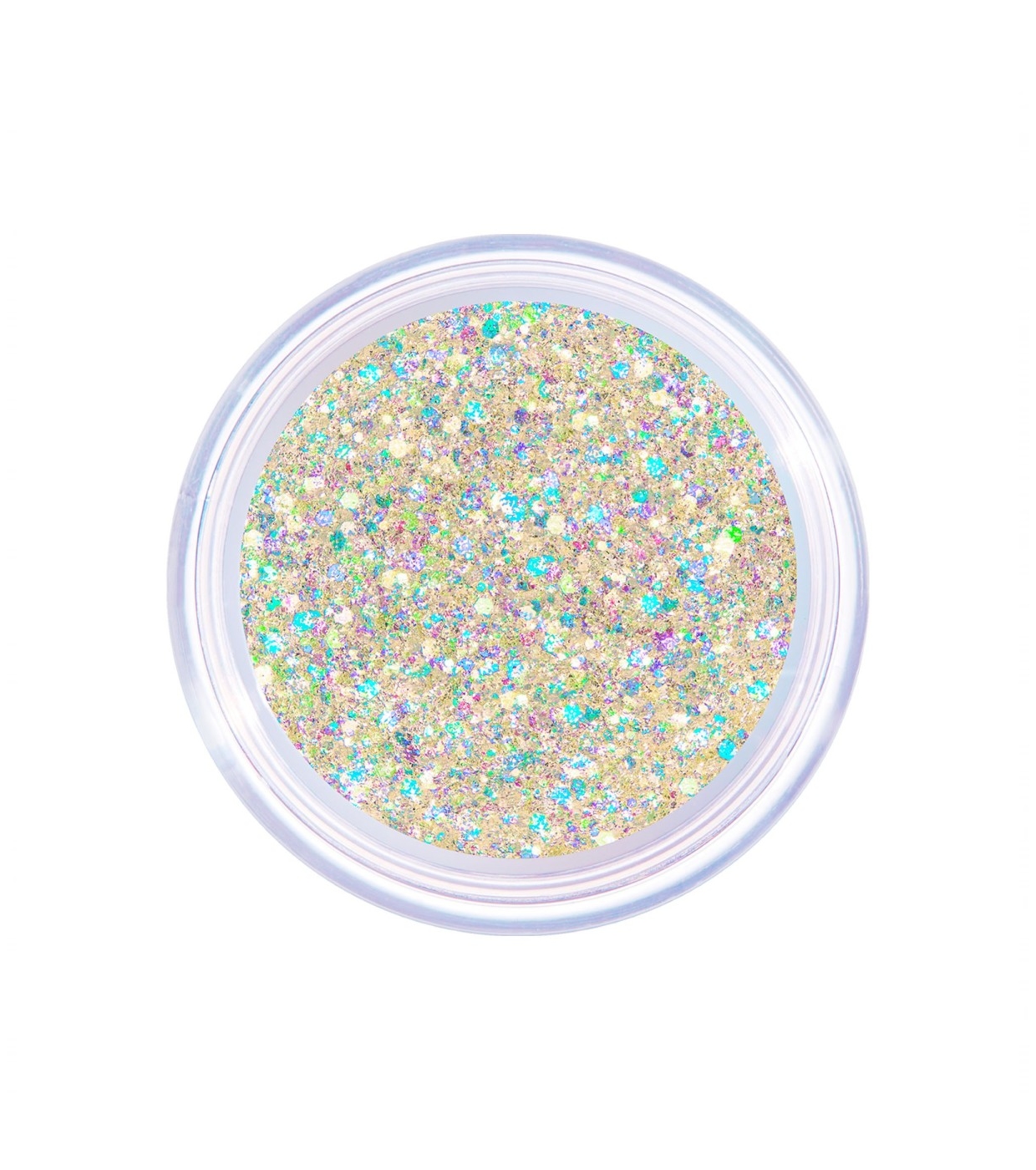 Dieses unglaubliche Gel mit Glitzerpartikeln unterschiedlicher Größe kann auf Gesicht, Körper und Haar aufgetragen werden, um spektakulären Glanz zu verleihen.