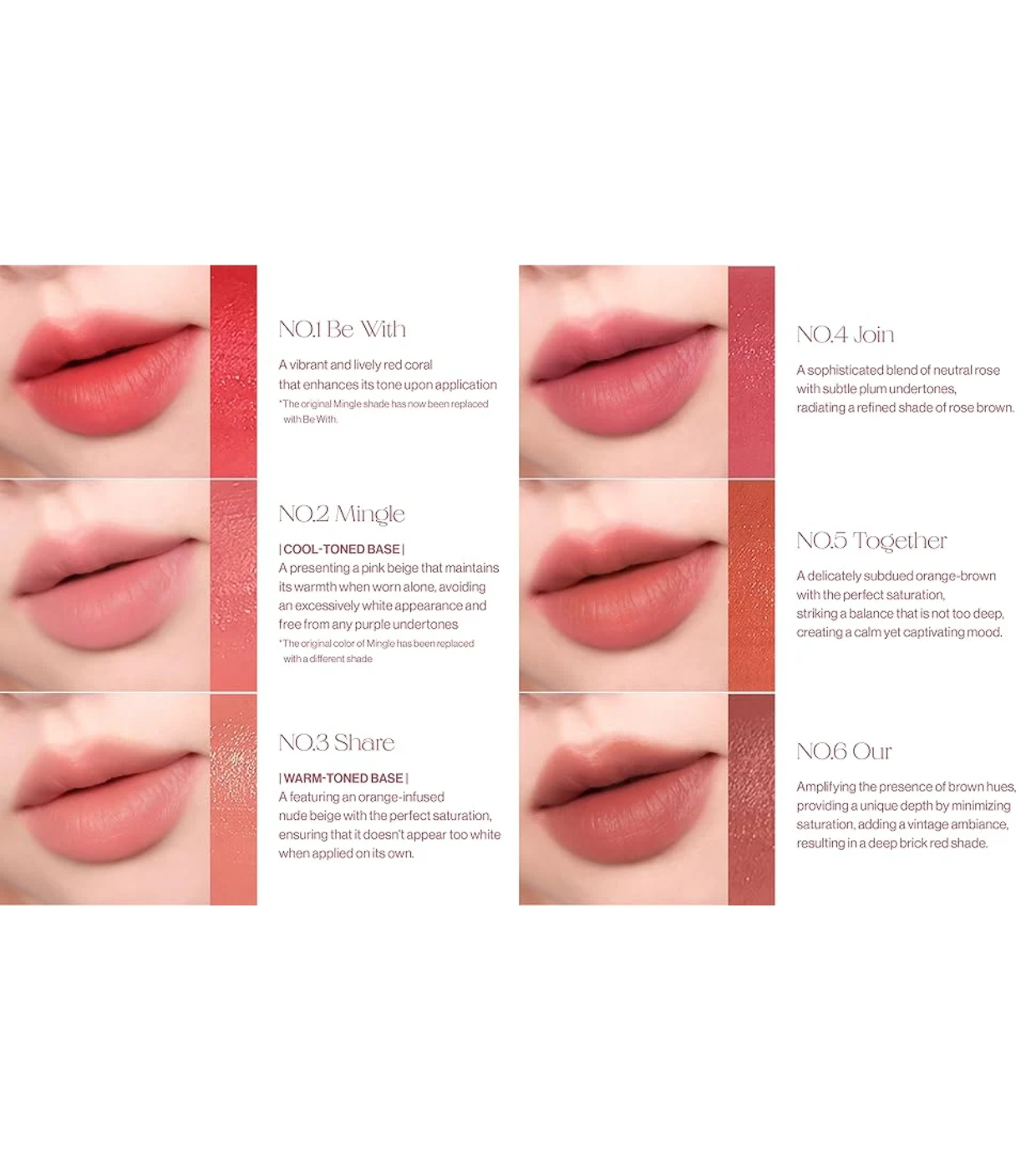 Diese hochdeckende Lippentönung bietet ein samtiges und weiches, mattes Finish, ideal für ein dezentes, aber raffiniertes Make-up im koreanischen Stil.
