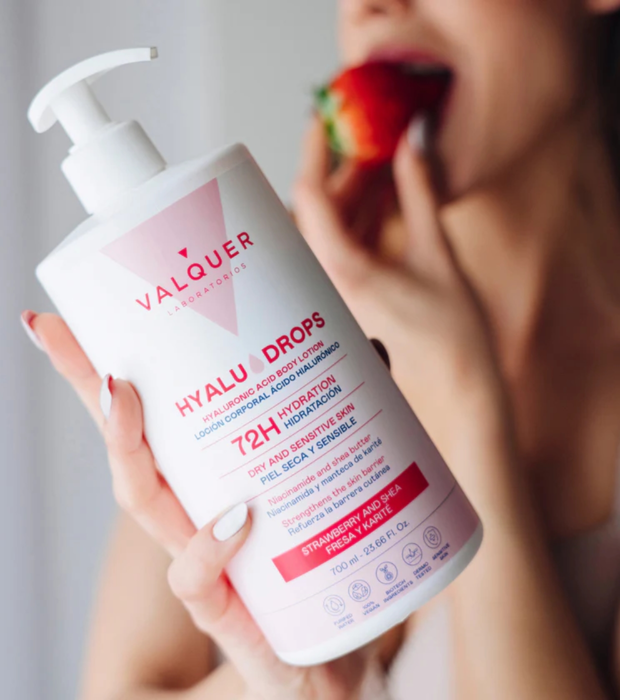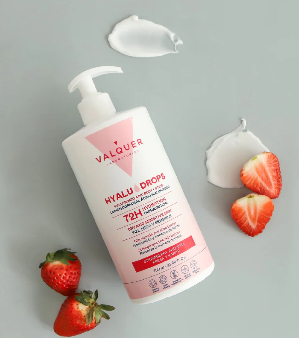 Verwöhnen Sie Ihre Haut jeden Tag mit der Valquer Valquer Erdbeer- und Shea-Körperlotion , einer seidigen, schnell einziehenden Lotion, die das Beste aus Feuchtigkeit und Nährstoffen mit einem süßen und umhüllenden frischen Erdbeeraroma kombiniert.
