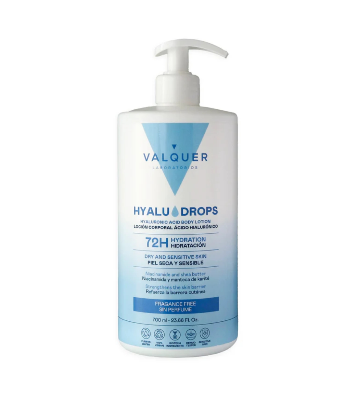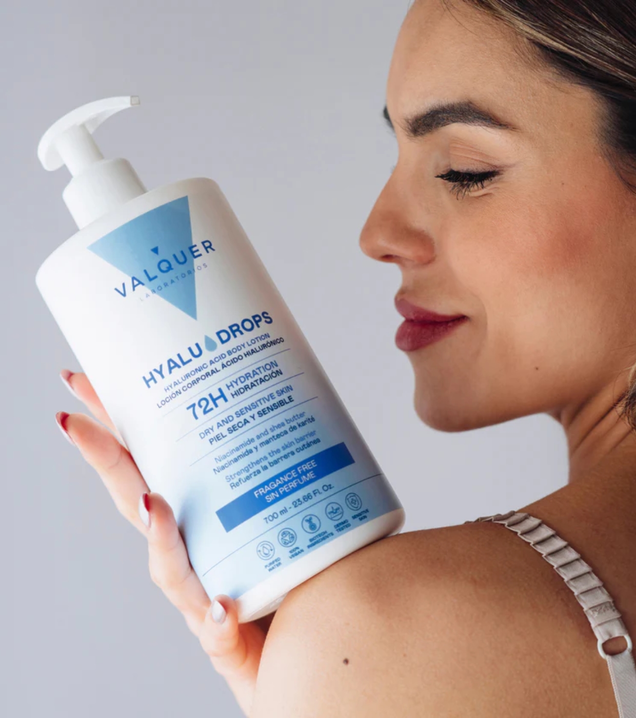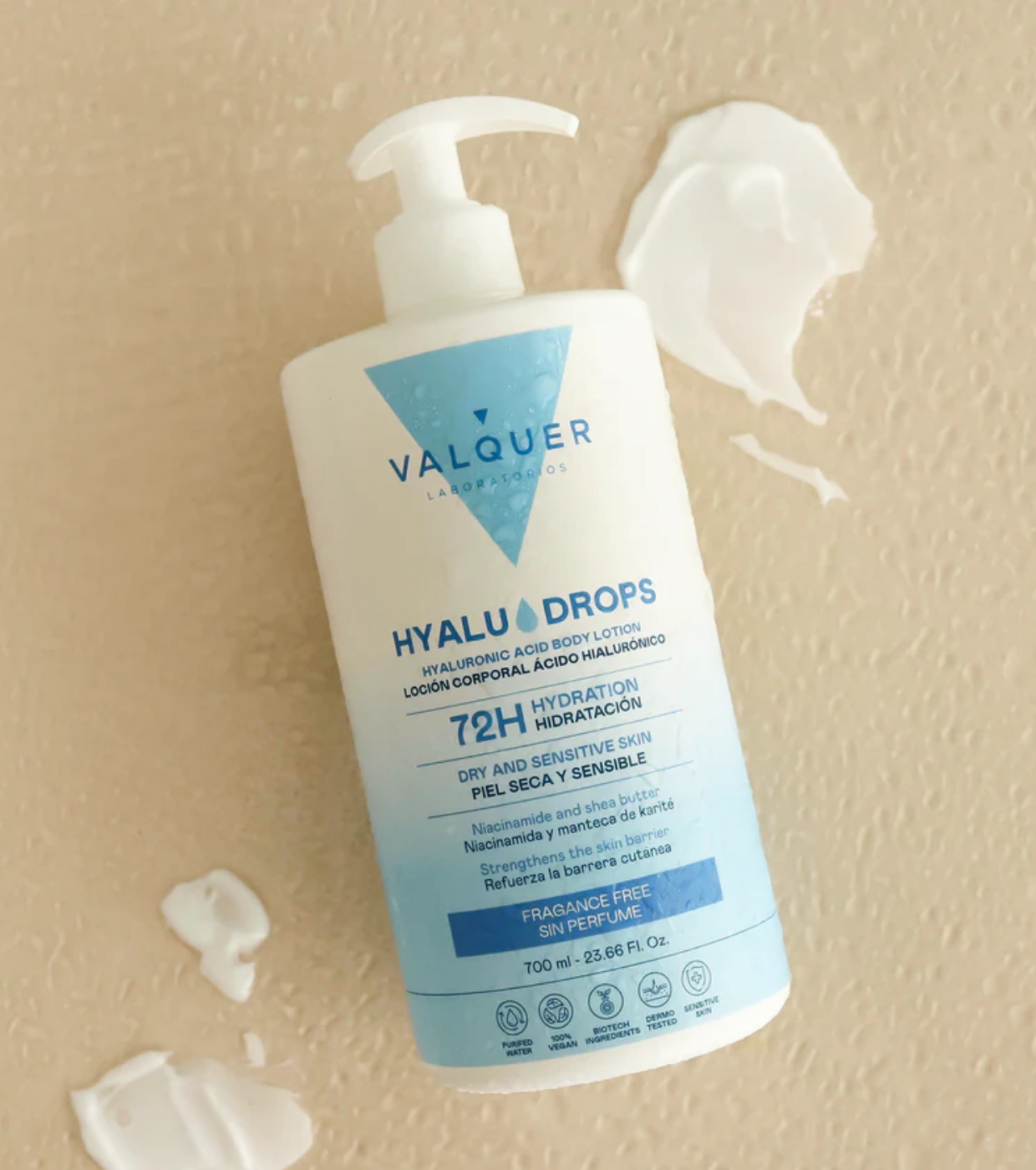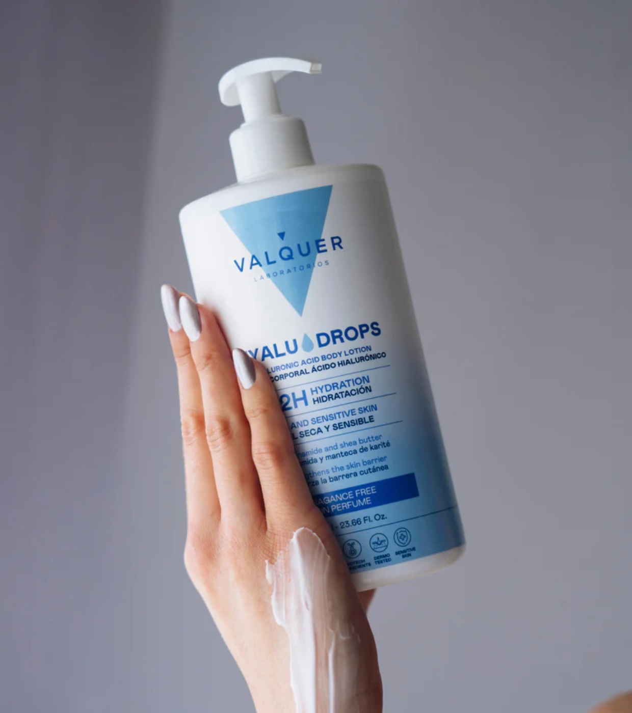 Entdecken Sie die Kraft der essentiellen Feuchtigkeitsversorgung mit der parfümfreien Körperlotion Hyaludrops von Valquer , einer minimalistischen Formel, die 72 Stunden lang intensiv Feuchtigkeit spendet, ohne Ihre Haut zu reizen.