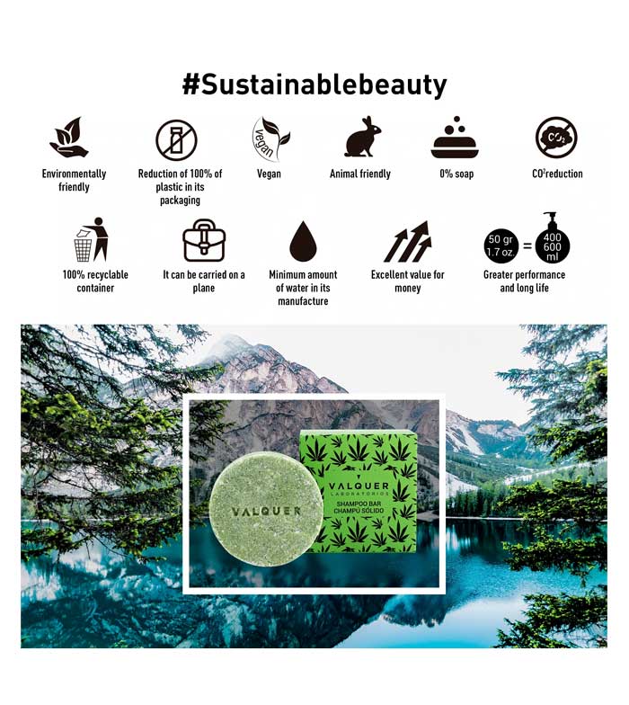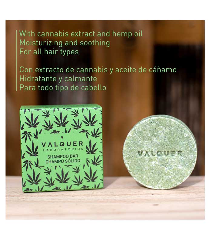 Dieses neuartige feste Shampoo von Valquer, feuchtigkeitsspendend und beruhigend, enthält Hanföl als Hauptbestandteil.