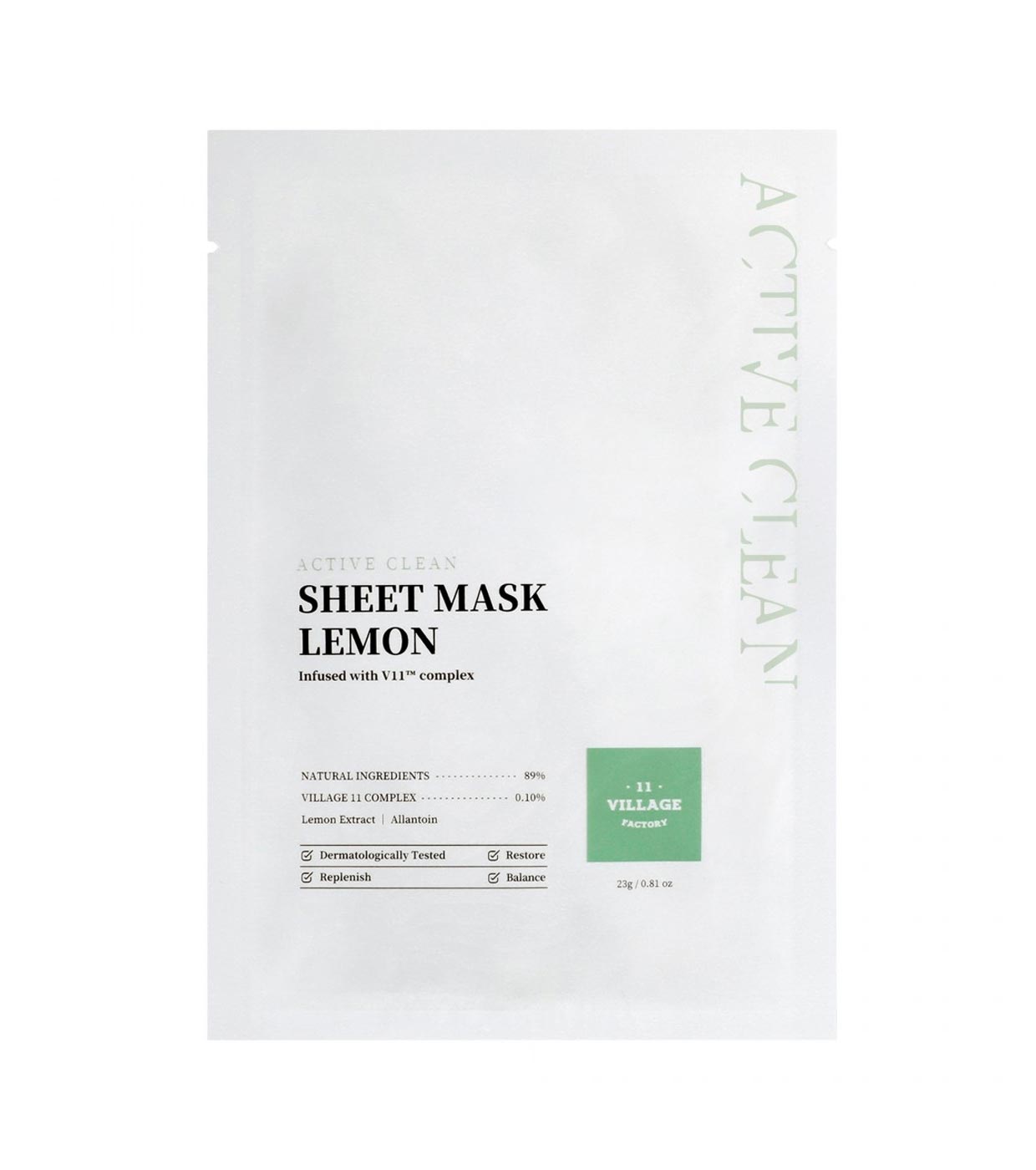 Feuchtigkeitsspendende und aufhellende Gesichtsmaske Sheet Mask Lemon Active Clean von Village 11 Factory.