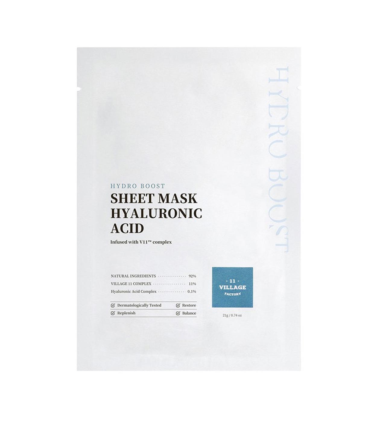 Erfrischende Stoff-Gesichtsmaske mit Hyaluronsäure Hydro Boost von Village 11 Factory.