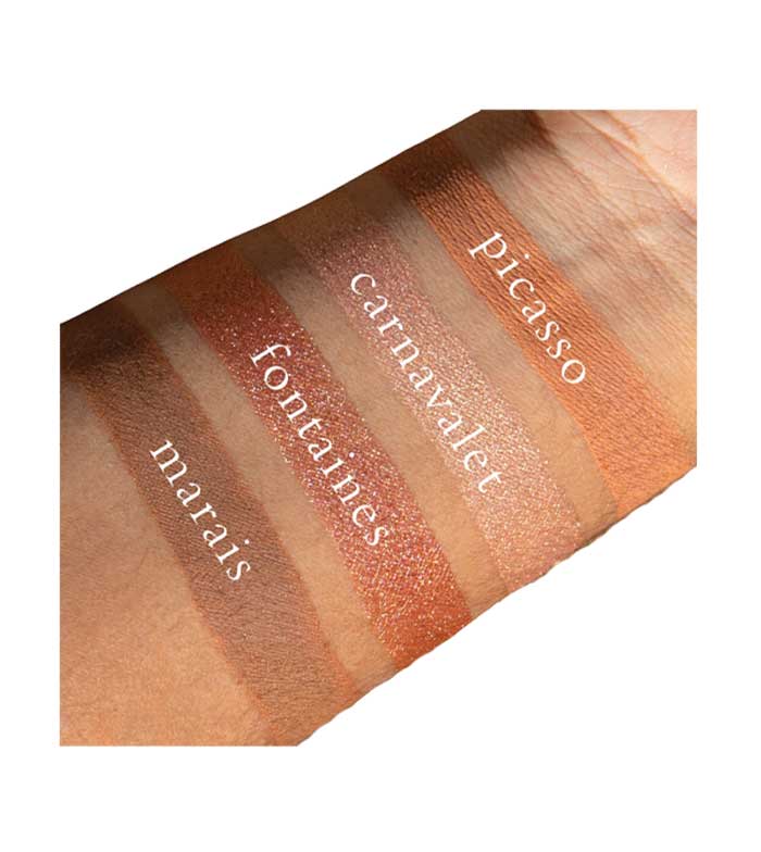 Ingredients: Shades 1 (Picasso), 4 (Marais): Talc, Octyldodecyl Stearoyl Stearate, Zinc Stearate. Shade 2 (Carnavalet): Talc, Octyldodecyl Stearoyl Stearate, Synthetic Fluorphlogopite, Calcium Sodium Borosilicate. Shade 3 (Fontaines): Synthetic Fluorphlogopite, Talc, Octyldodecyl Stearoyl Stearate, Zinc Stearate. Vegan Shades: 1,3,4. (May Contain +/-: Titanium Dioxide CI 77891, Mica CI 77019, Iron Oxides CI 7749/7749/77499, Red 40 Lake CI 15850, Potassium Sorbate, Sodium Benzoate, Silica, Tin Oxide, Ultramarines Blue CI 77007, Carmine CI 75470).