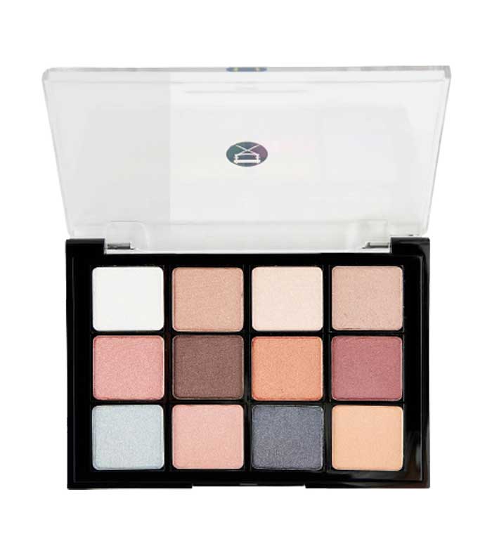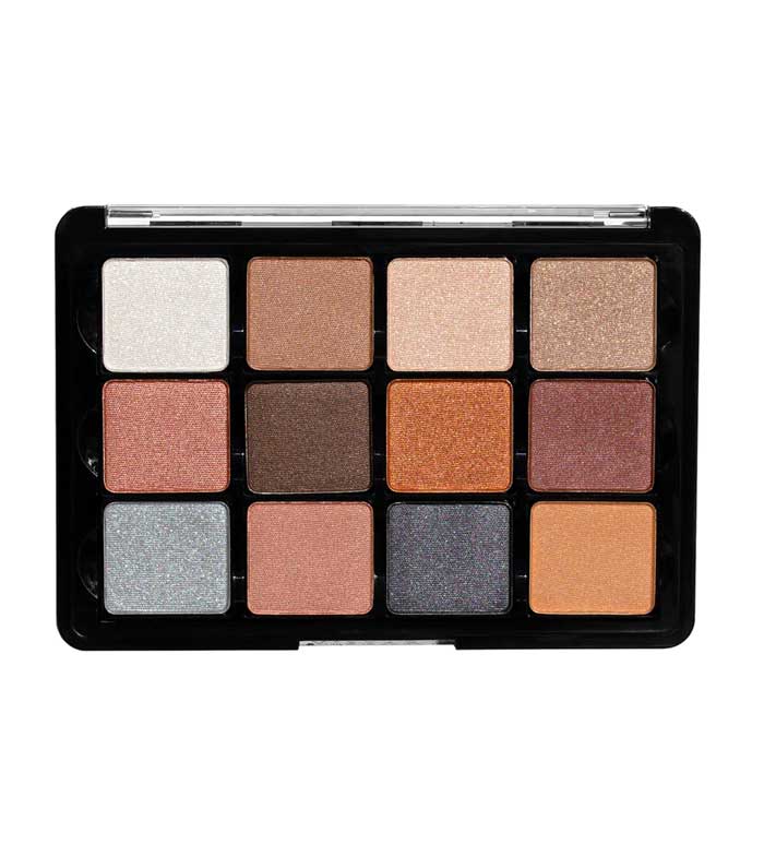 Eine Lidschattenpalette mit 12 schimmernden Nuancen in Satin- und Metallic-Finish.