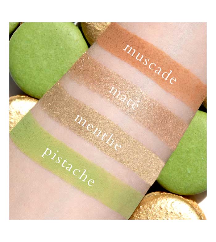 Shades 1 (Muscade), 4 (Pistache): Talc, Mica, Octyldodecyl Stearoyl Stearate, Zinc Stearate. Shade 2 (Maté): Calcium Sodium Borosilicate, Talc, Mica, Octyldodecyl Stearoyl Stearate, Synthetic Fuorphlogopite, Zinc Stearate, Silica. Shade 3 (Menthe): Mica, Calcium Sodium Borosilicate, Talc, Octyldodecyl Stearoyl Stearate, Silica. (May Contain +/- Iron Oxides CI 77491/ 77492/ 77499, Titanium Dioxide CI 77891, FD&C Blue 1 CI 42090, Ferric Ferocyanide CI 77510, Yellow 5 Lake CI 19410, Potassium Sorbate, Sodium Benzoate, Tin Oxide).