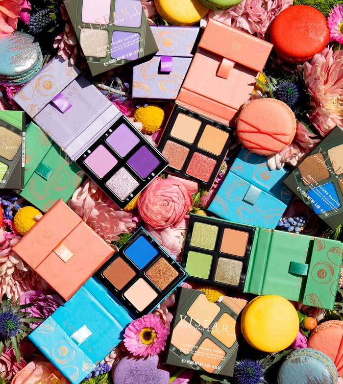Visearts Petits Fours Shadow Palette enthält 4 unglaublich mischbare, hyperpigmentierte Farbtöne.