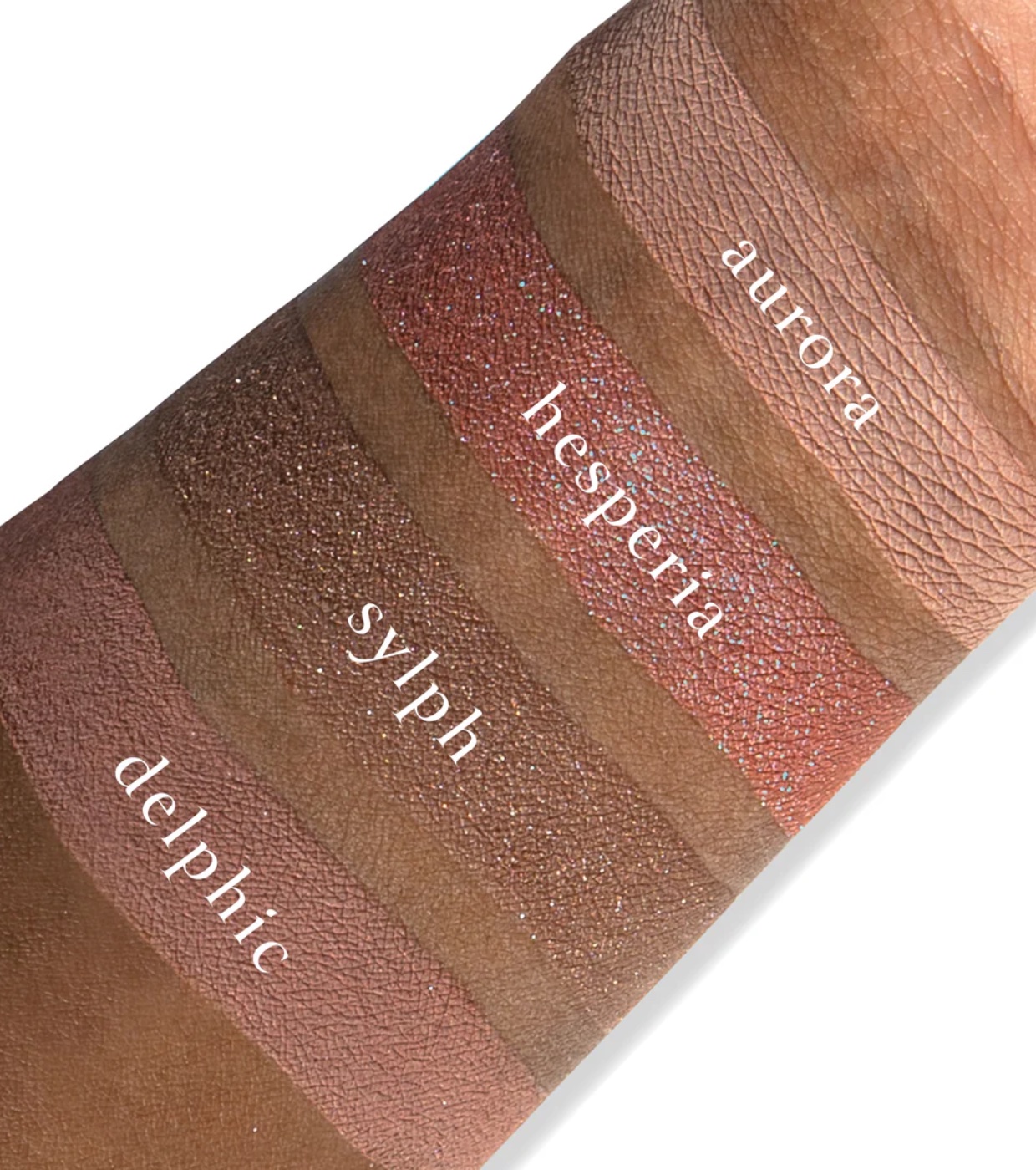 Shades 1 (Aurora), 4 (Delphic): Talc, Octyldodecyl Stearoyl Stearate, Zinc Stearate. Shade 2 (Hesperia): Calcium Sodium Borosilicate, Octyldodecyl Stearoyl Stearate, Synthetic Fluorphlogopite. Shade 3 (Sylph): Calcium Sodium Borosilicate, Octyldodecyl Stearoyl Stearate, Talc. (May Contain +/-: Iron Oxides CI 77491/77499, Manganese Violet CI 77742, Mica CI 77019, Sodium Dehydroacetate, Synthetic Sapphire, Tin Oxide Cl 77861, Titanium Dioxide CI 77891, Ultramarines Blue CI 77007).