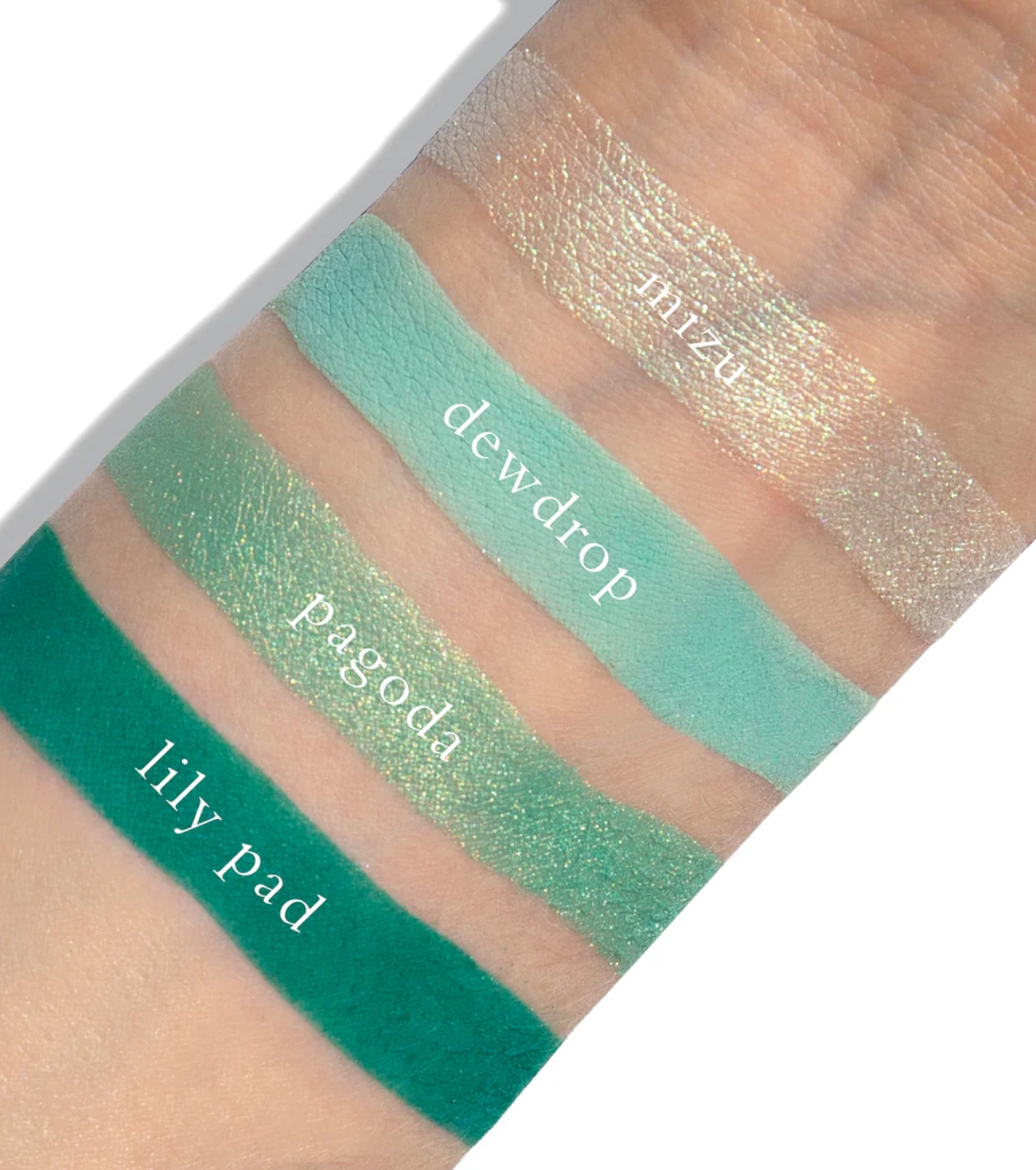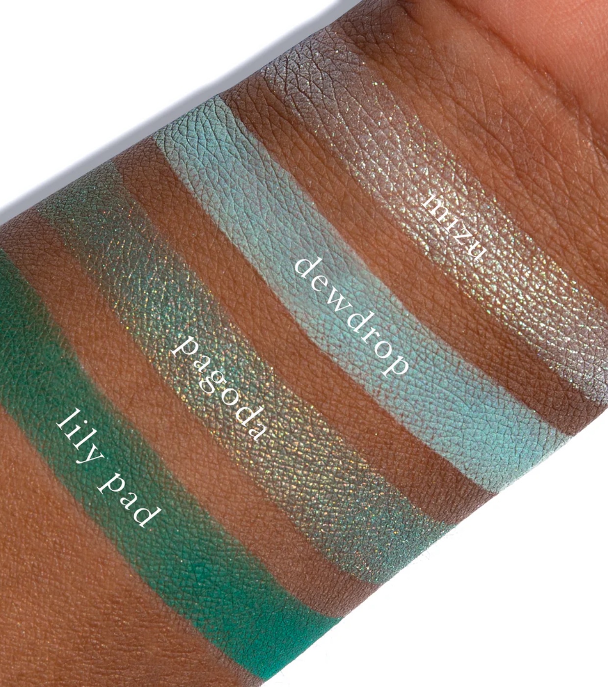 Shade 1 (Mizu): Talc, Octyldodecyl Stearoyl Stearate, Zinc Stearate. Shade 2 (Dewdrop): Talc, Octyldodecyl Stearoyl Stearate, Zinc Stearate, Silica. Shade 3 (Pagoda): Calcium Sodium Borosilicate, Octyldodecyl Stearoyl Stearate, Talc, Zinc Stearate, Silica. Shade 4 (Lily Pad): Calcium Sodium Borosilicate, Octyldodecyl Stearoyl Stearate, Silica, Talc, Zinc Stearate. (May contain +/-: Blue 1 Lake CI 42090, Boron Oxide, Chromium Hydroxide Green CI 77289, Chromium Oxide Greens CI 77288, Ferric Ferrocyanide CI 77510, Mica CI 77019, Sodium Benzoate, Sodium Chloride, Tin Oxide CI 77861, Titanium Dioxide CI 77891, Water (Aqua), Yellow 5 Lake CI 19140)