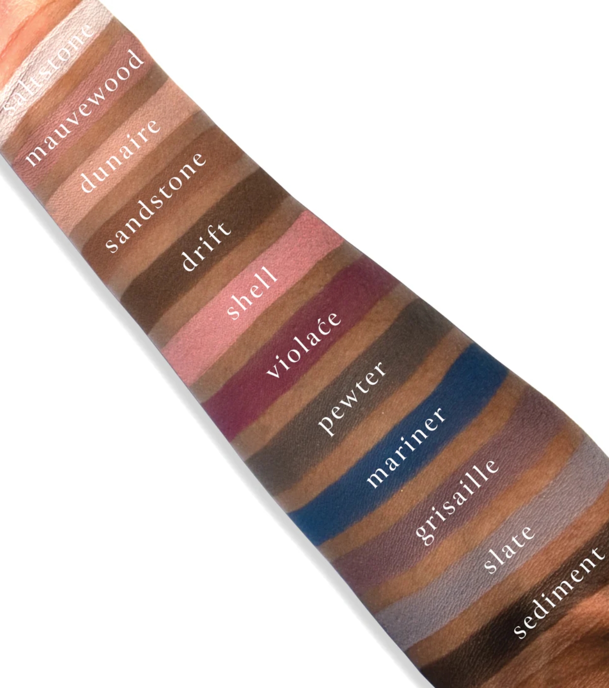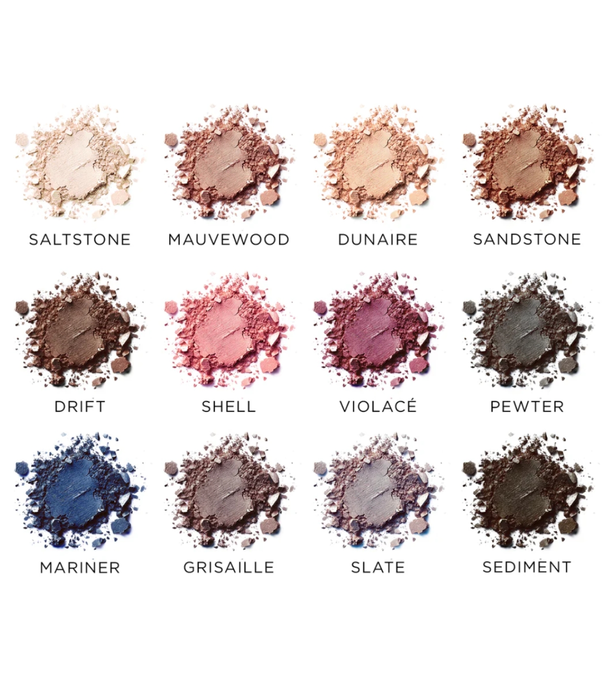 Shades 1 (Saltstone), 2 (Mauvewood), 3 (Dunaire), 4 (Sandstone), 5 (Drift), 6 (Shell), 8 (Pewter), 11 (Slate), 12 (Sediment): Talc, Mica, Octyldodecyl Stearoyl Stearate, Zinc Stearate. Shade 7 (Violacé): Talc, Clcium Aluminum Borosilicate, Octyldodecyl Stearoyl Stearate, Silica, Zinc Stearate. Shade 9 (Mariner): Talc, Mica, Calcium Aluminum Borosilicate, Octyldodecyl Stearoyl Stearate, Zinc Stearate, Silica. Shade 10 (Grisaille): Talc, Mica, Octyldodecyl Stearoyl Stearate, Zinc Stearate, Silica. (May Contain +/-: Iron Oxides Ci77492/Ci 77499/ Ci 77491, Red 6 Ci 15850, Red 7 Ci 15850, Titanium Dioxide Ci 77891, Ultramarine Blue Ci 77007, Manganese Violet Ci 77742, D&C Black No.2 Ci 77266, Ferric Ferrocyanide Ci 77510, Aqua, Potassium Sorbate, Sodium Benzoate).