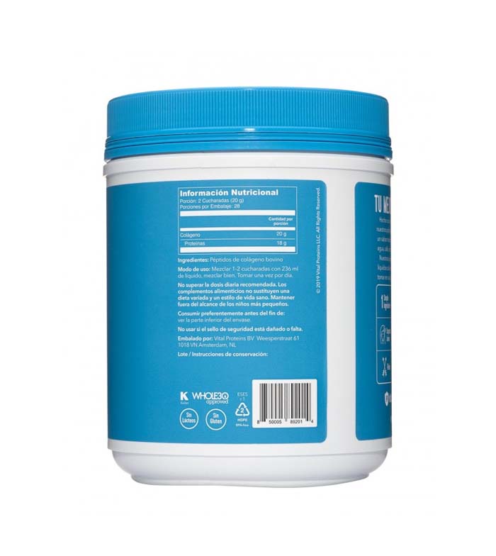 - Jede Dosis versorgt Sie mit 20 Gramm Kollagenpeptiden, die aus der Haut freilaufender, grasgefütterter Kühe gewonnen werden.