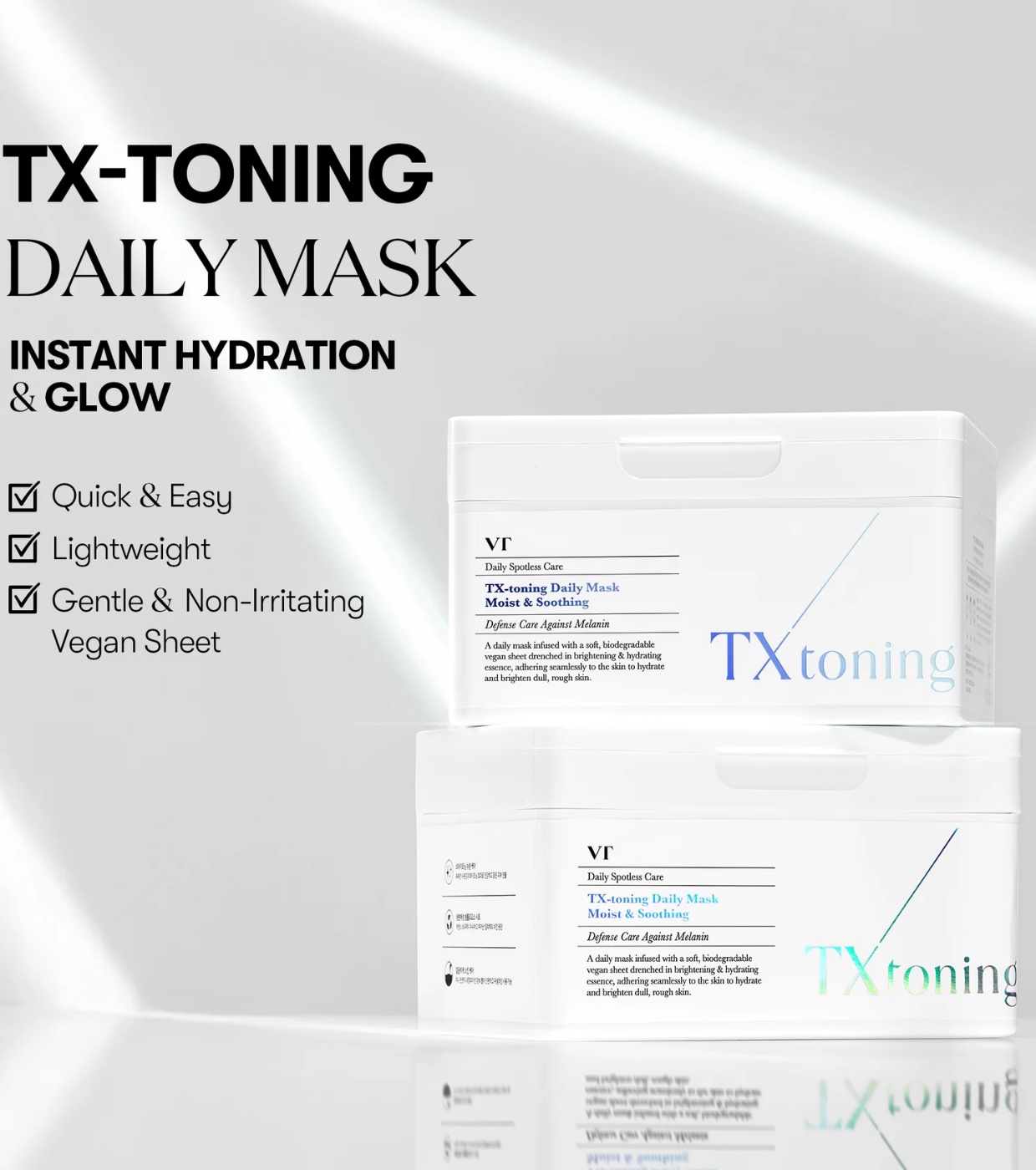 TX Toning Daily Hydrating Mask VT Cosmetics ist eine Gesichtsmaske für die tägliche Anwendung, die entwickelt wurde, um die Haut tiefenwirksam mit Feuchtigkeit zu versorgen, zu beruhigen und das Erscheinungsbild von Hautunreinheiten, Akneflecken und fahler Haut zu verbessern, selbst bei empfindlicher Haut.