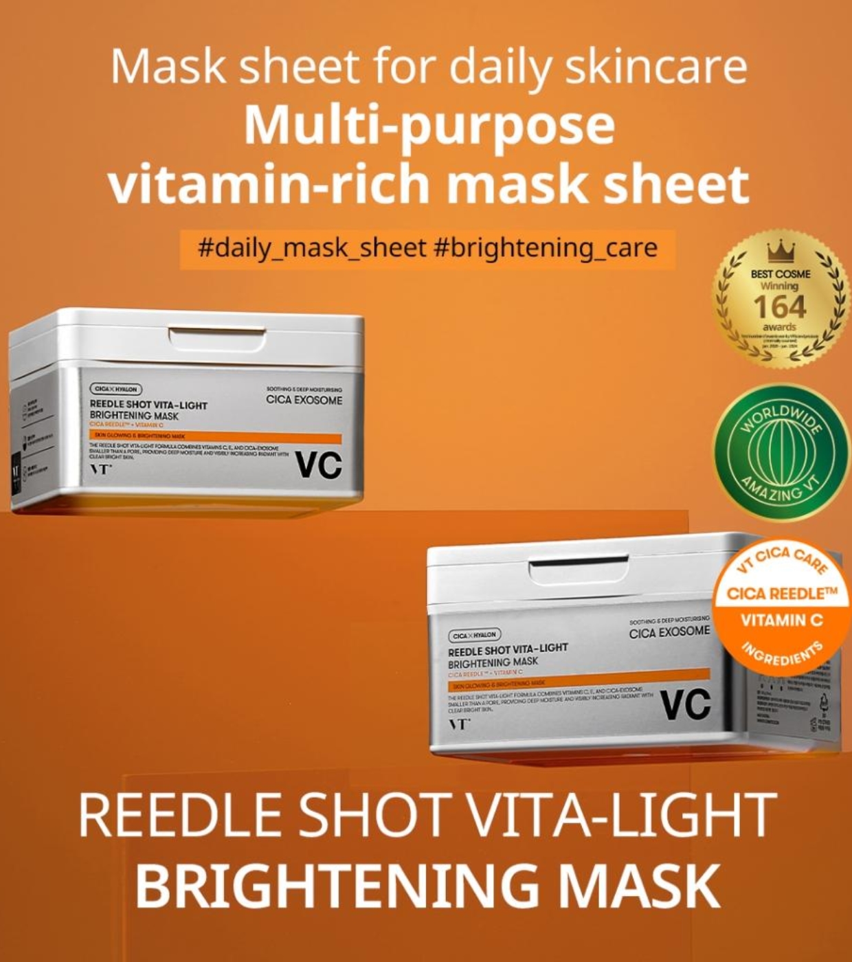 Geben Sie Ihrer Haut ihre Strahlkraft zurück mit der Reedle Shot Vita-Light Brightening Mask von VT Cosmetics , einer veganen Gesichtsmaske, die Ihr Gesicht ab der ersten Anwendung sichtbar verwandelt.