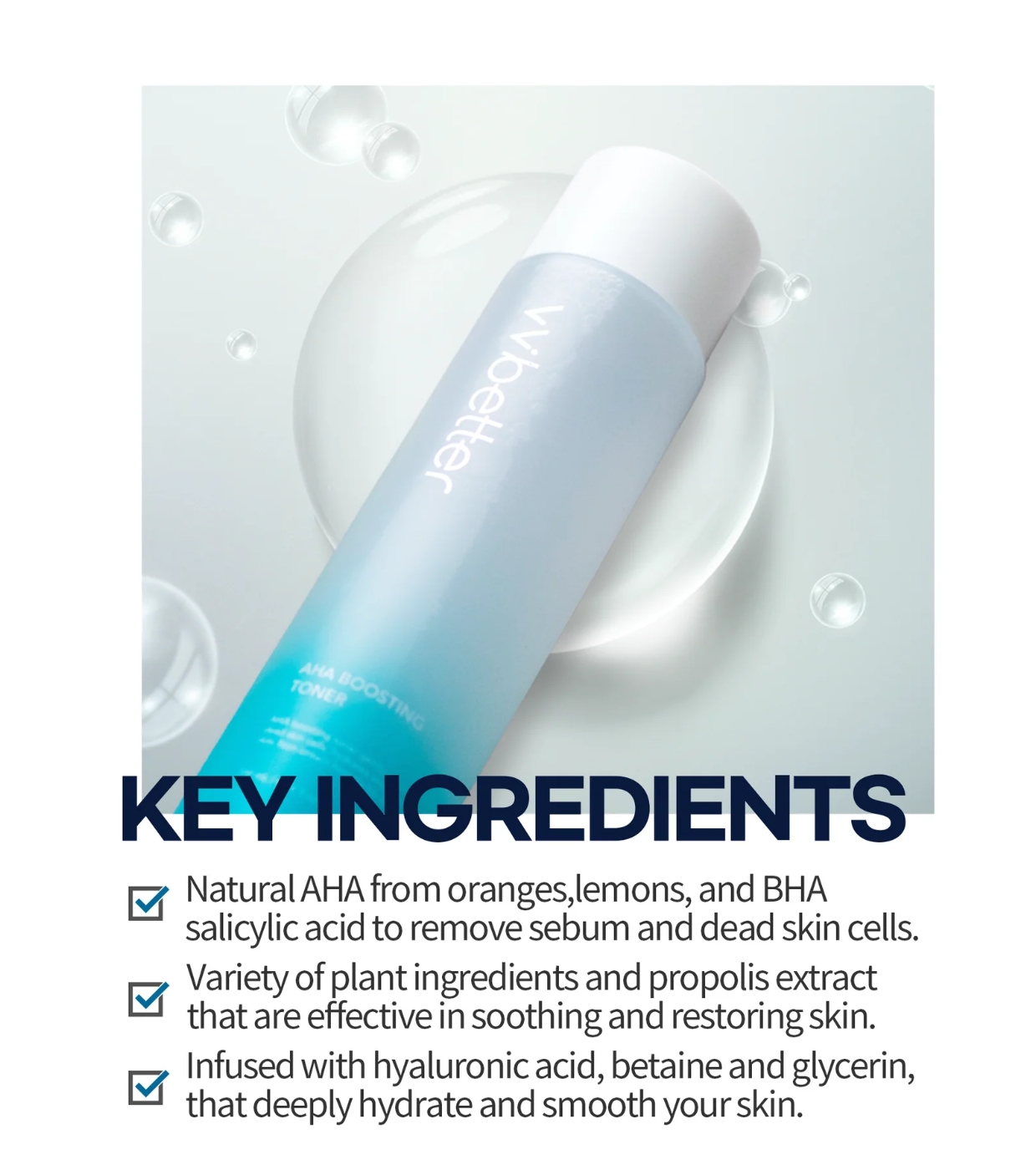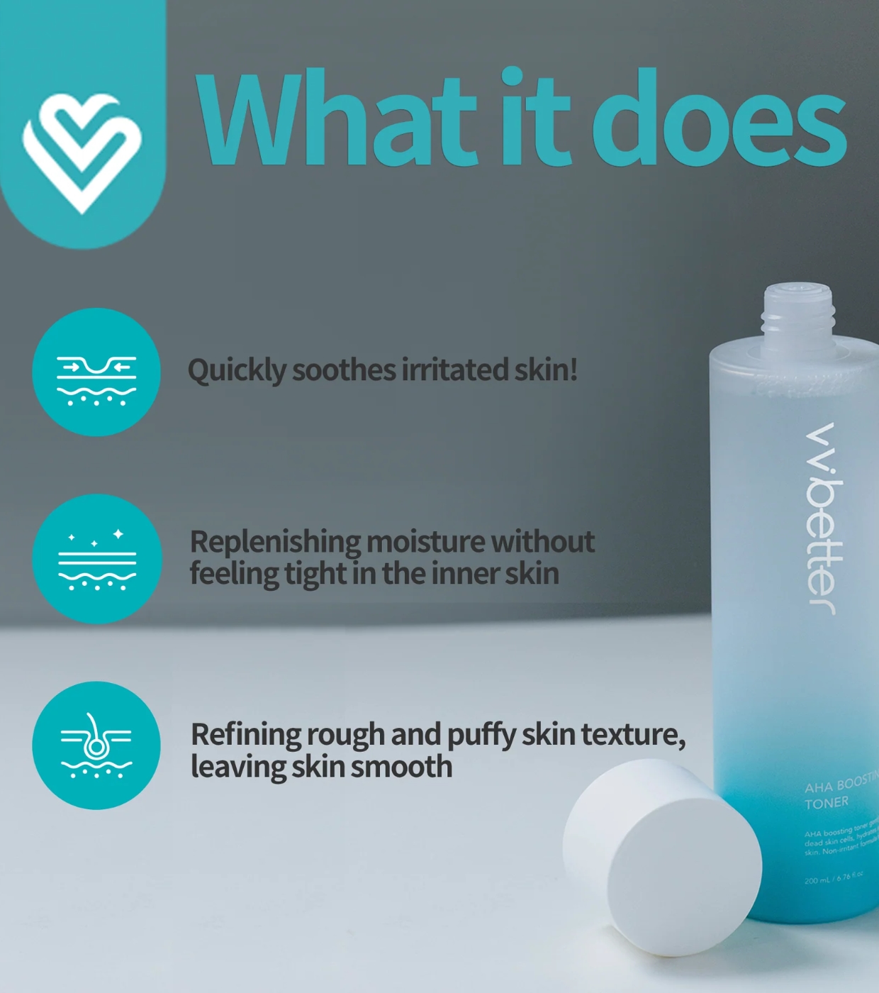 Strahlende Haut beginnt mit sanfter Erneuerung. Dieser AHA Boosting Toner von vvbetter mit neutralem pH-Wert ist der ideale Verbündete für alle, die sich einen strahlenderen, strafferen und ebenmäßigeren Teint wünschen, ohne auf Zartheit verzichten zu müssen.