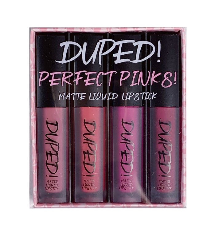 Set aus vier flüssigen, matten flüssigen Lippenstiften.