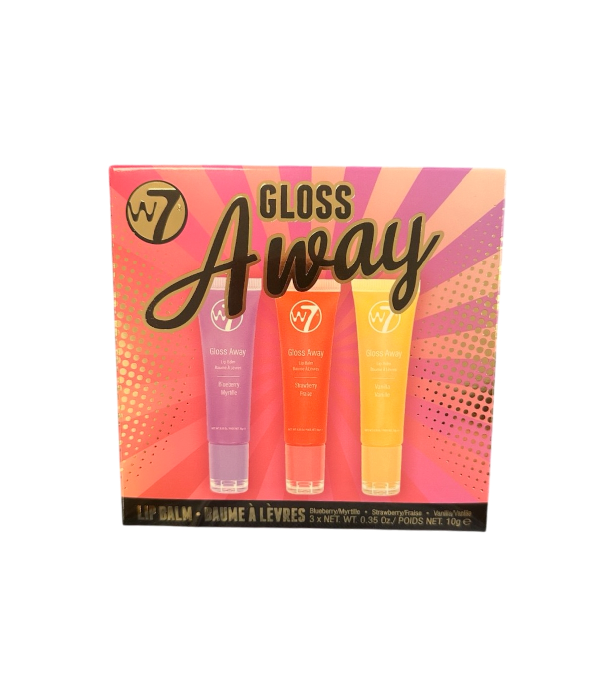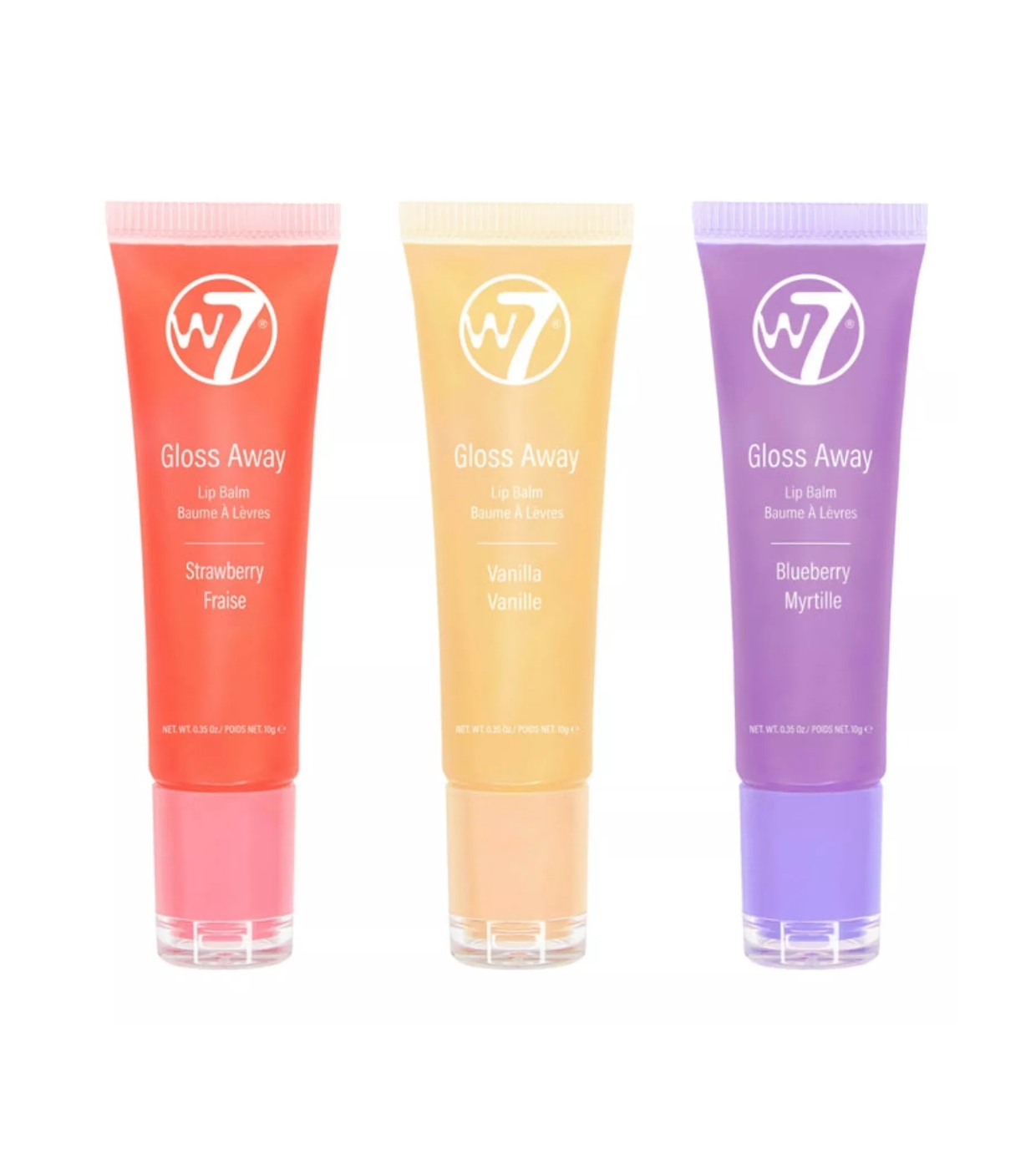 Versorgen Sie Ihre Lippen mit Feuchtigkeit und verleihen Sie ihnen einen Hauch von Süße mit dem W7 Gloss Away Set , einer Packung mit 3 Lippenbalsamen mit unwiderstehlichen Aromen.