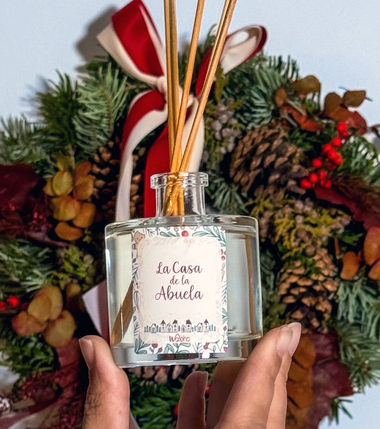 Genießen Sie den ganzen Tag lang den unwiderstehlichen Duft von La Casa de la Abuela Wailoha Weihnachts-Mikado-Lufterfrischer in limitierter Auflage .