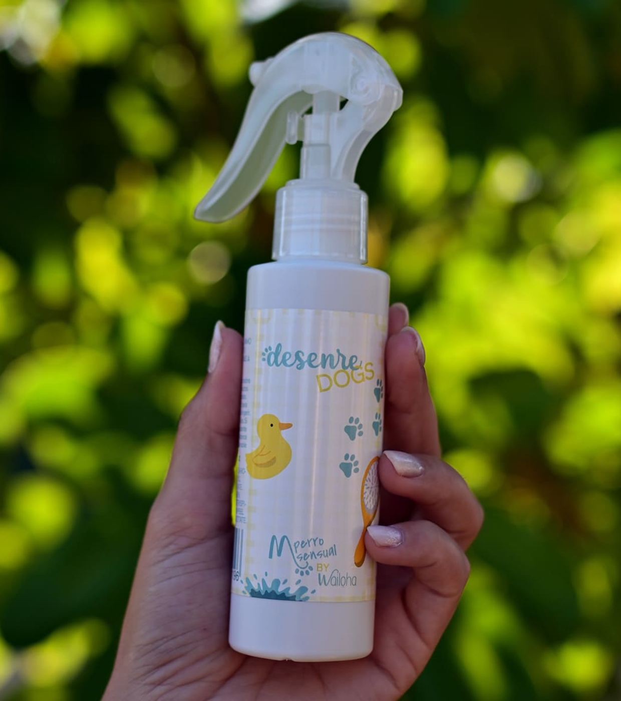 Dieses Entwirrungsspray Desenredogs aus der Cursed Sensual Dog-Kollektion von Wailoha kann trocken oder nass verwendet werden.