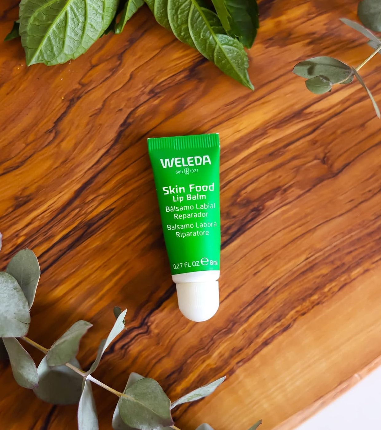 Der Lip Balm Skin Food von Weleda ist ein 100% natürlicher Lippenbalsam, der die Lippen mit Feuchtigkeit versorgt, sie weich macht und schützt, insbesondere vor kalten Witterungsbedingungen.