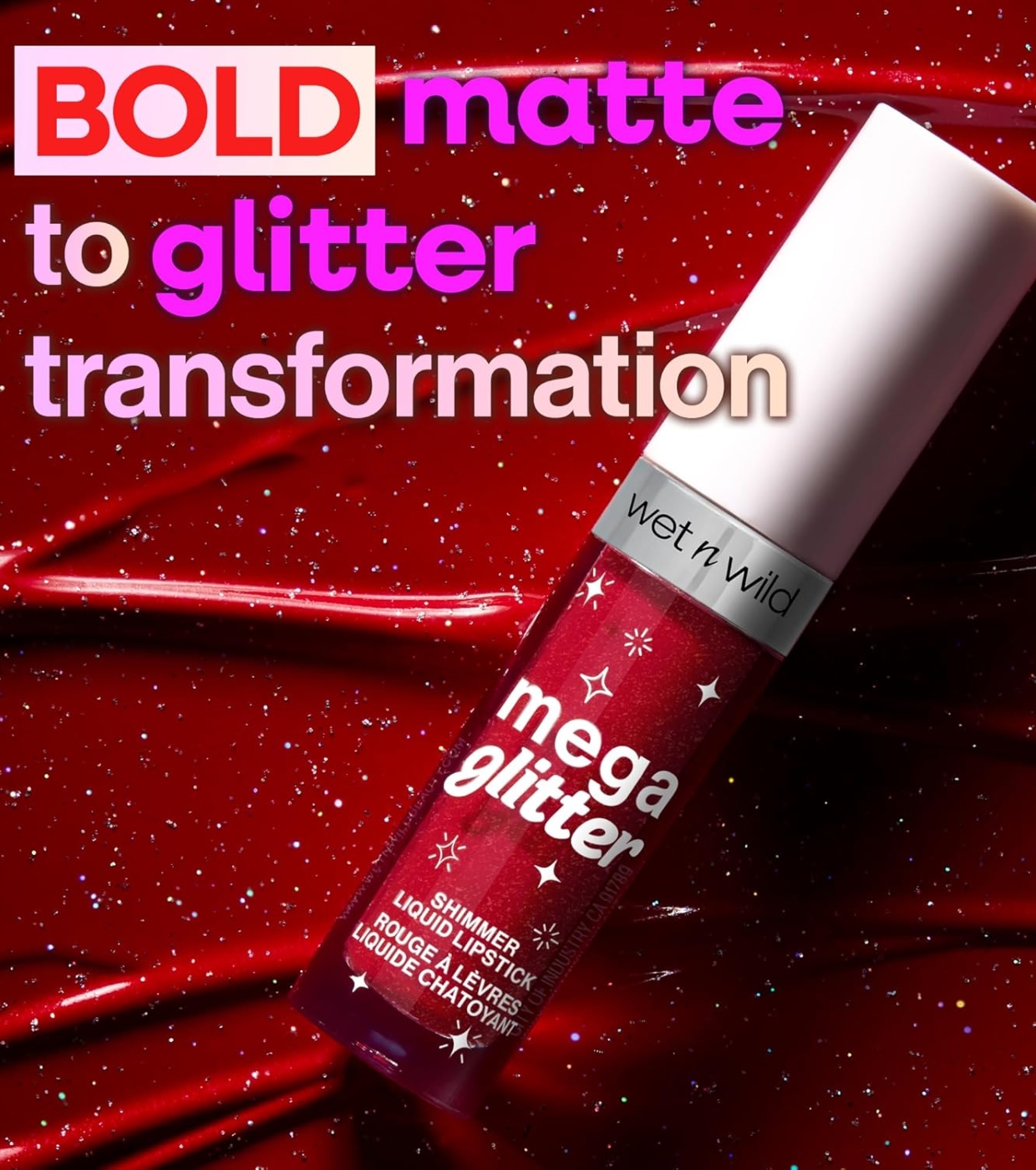 Lassen Sie sich verzaubern! Der Mega Glitter Shimmer Liquid Lipstick von wet n wild verwandelt Ihren Look in Sekundenschnelle mit seiner innovativen Formel, die durch einfaches Zusammenpressen Ihrer Lippen von einem matten Finish zu einem strahlenden Glanz wechselt.