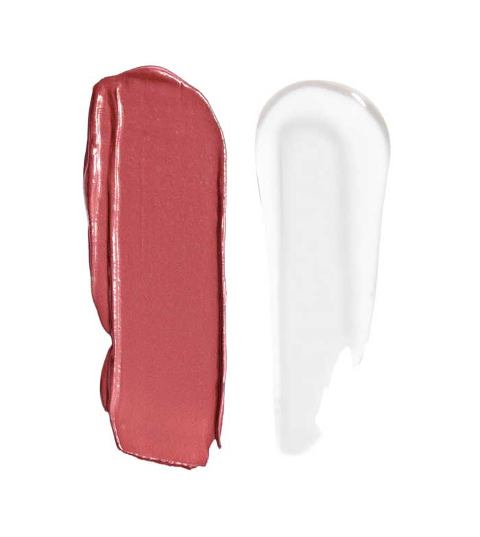 Dieser Lippenstift mit zwei Enden bietet einen langanhaltenden, intensiven Farbton auf der einen Seite und ein glänzendes Finish auf der anderen Seite.