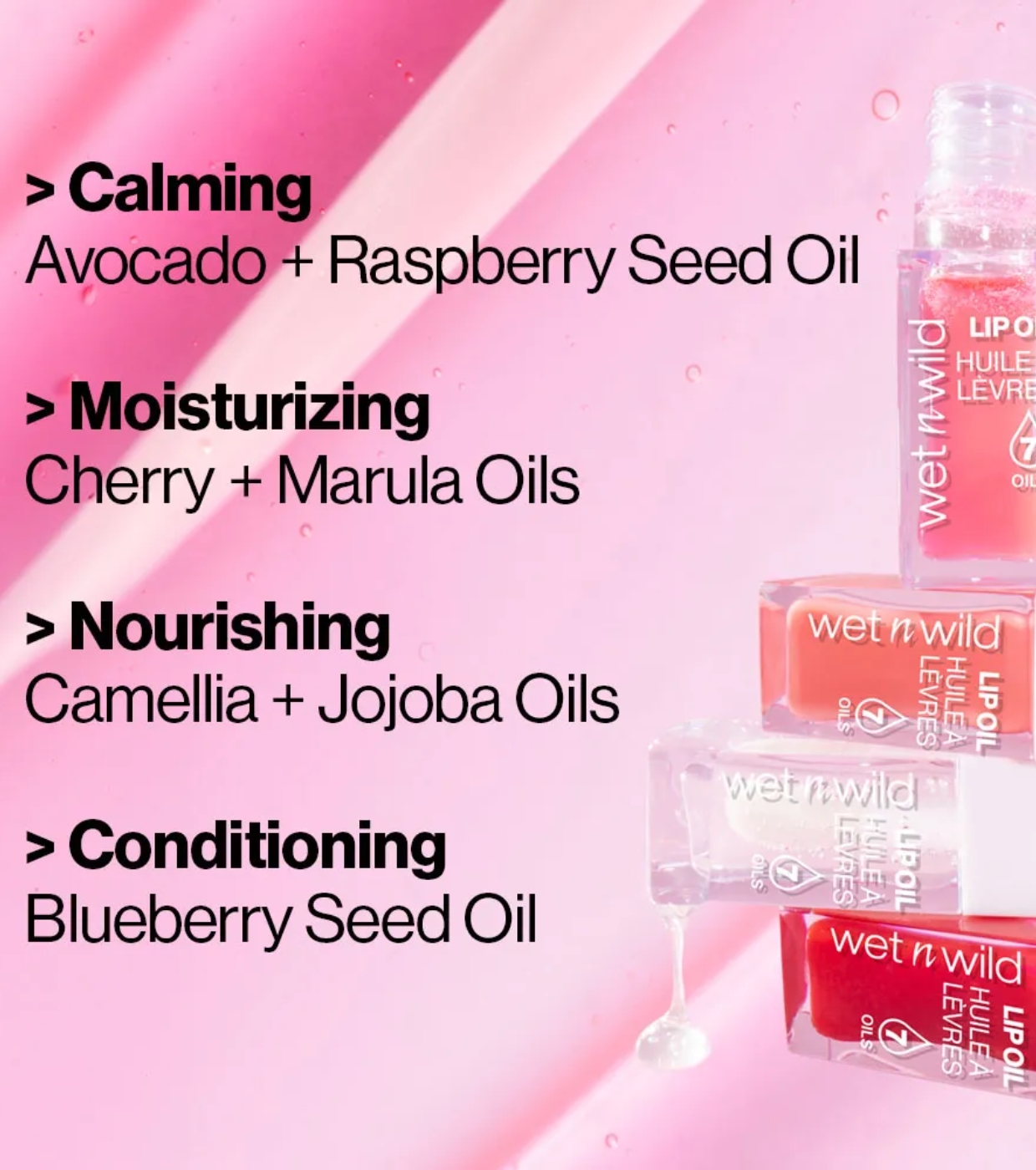 Entdecken Sie die super-pflegende Formel von Wet N Wild Lip Oil , einem getönten Lippenöl, das optimale Pflege und Feuchtigkeitsversorgung mit einem traumhaften Spiegelglanz kombiniert.