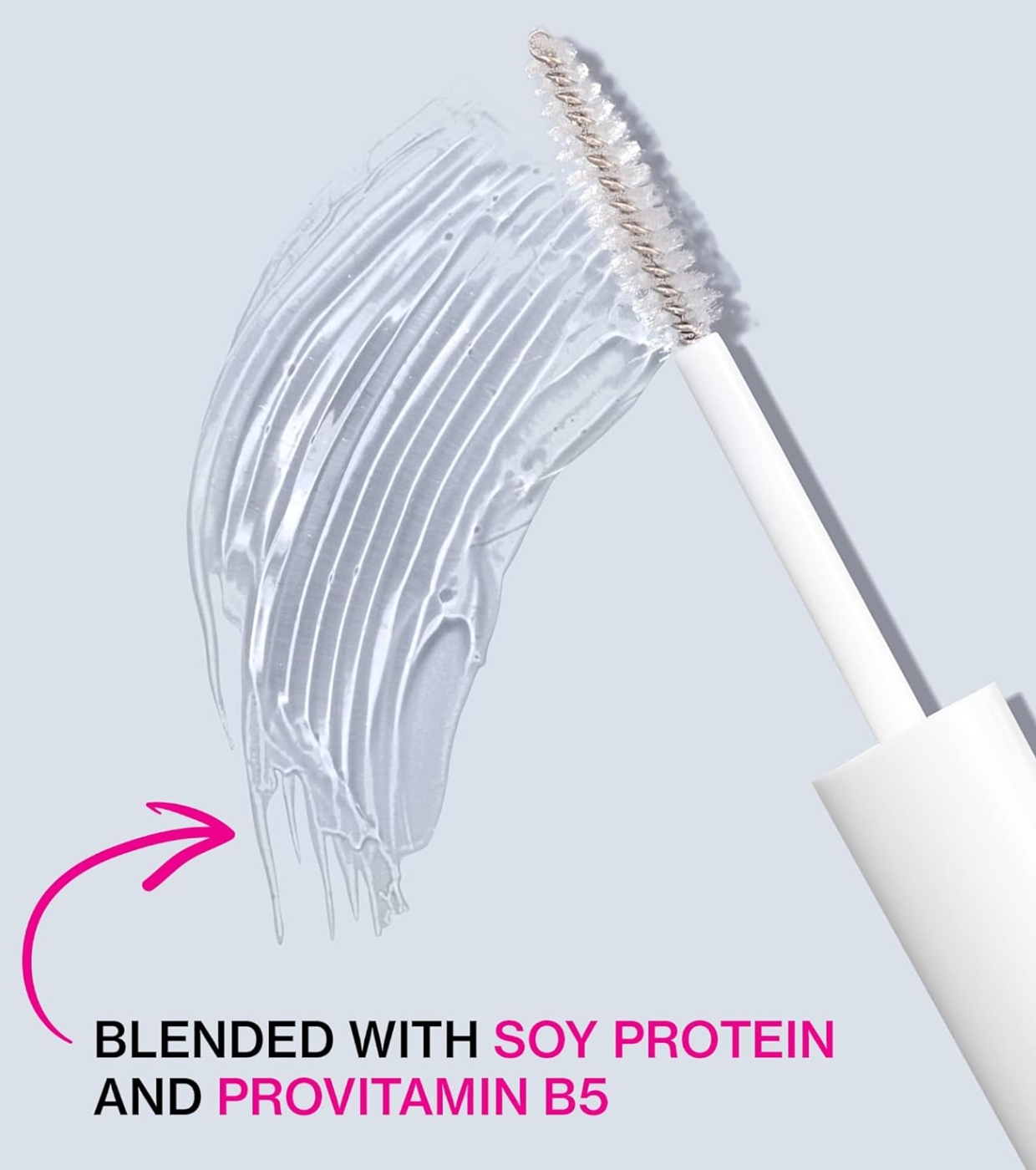 Angereichert mit Sojaprotein und Vitamin E hilft diese nicht zusammenbackende Formel dabei, die Wimpern zu pflegen und bietet eine Basisschutzschicht, die als Versiegelung verwendet werden kann, um das Abblättern gefärbter Wimperntusche zu verhindern.