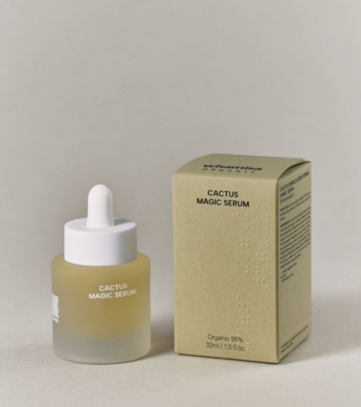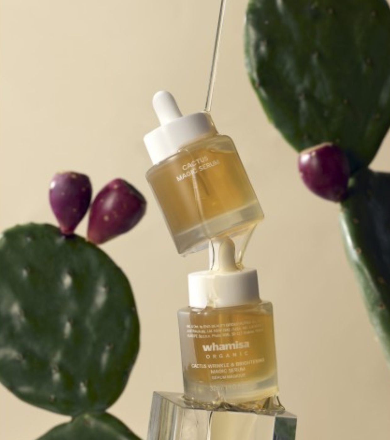 Das Wrinkle & Brightening Magic Serum von Whamisa besteht zu 95,4 % aus organischem Opuntia Ficus-Indica-Kaktusstammextrakt und kombiniert die feuchtigkeitsspendende Kraft von Schleim mit leistungsstarken Anti-Aging- und Antioxidantienwirkstoffen, die die Zeichen der Hautalterung umkehren.