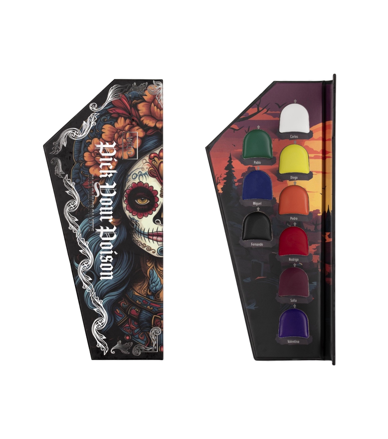 Die Palette enthält 9 Farben, um dieses Haloween die besten Looks zu kreieren.