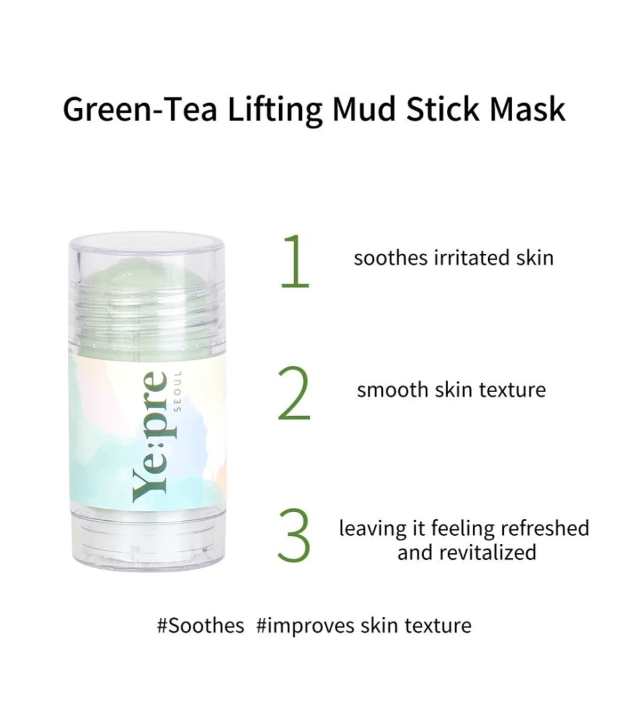 Die Gesichts-Stick-Maske Green-Tea Lifting von Ye:pre ist ideal, um die Haut auf praktische und effektive Weise zu pflegen und zu verbessern.
