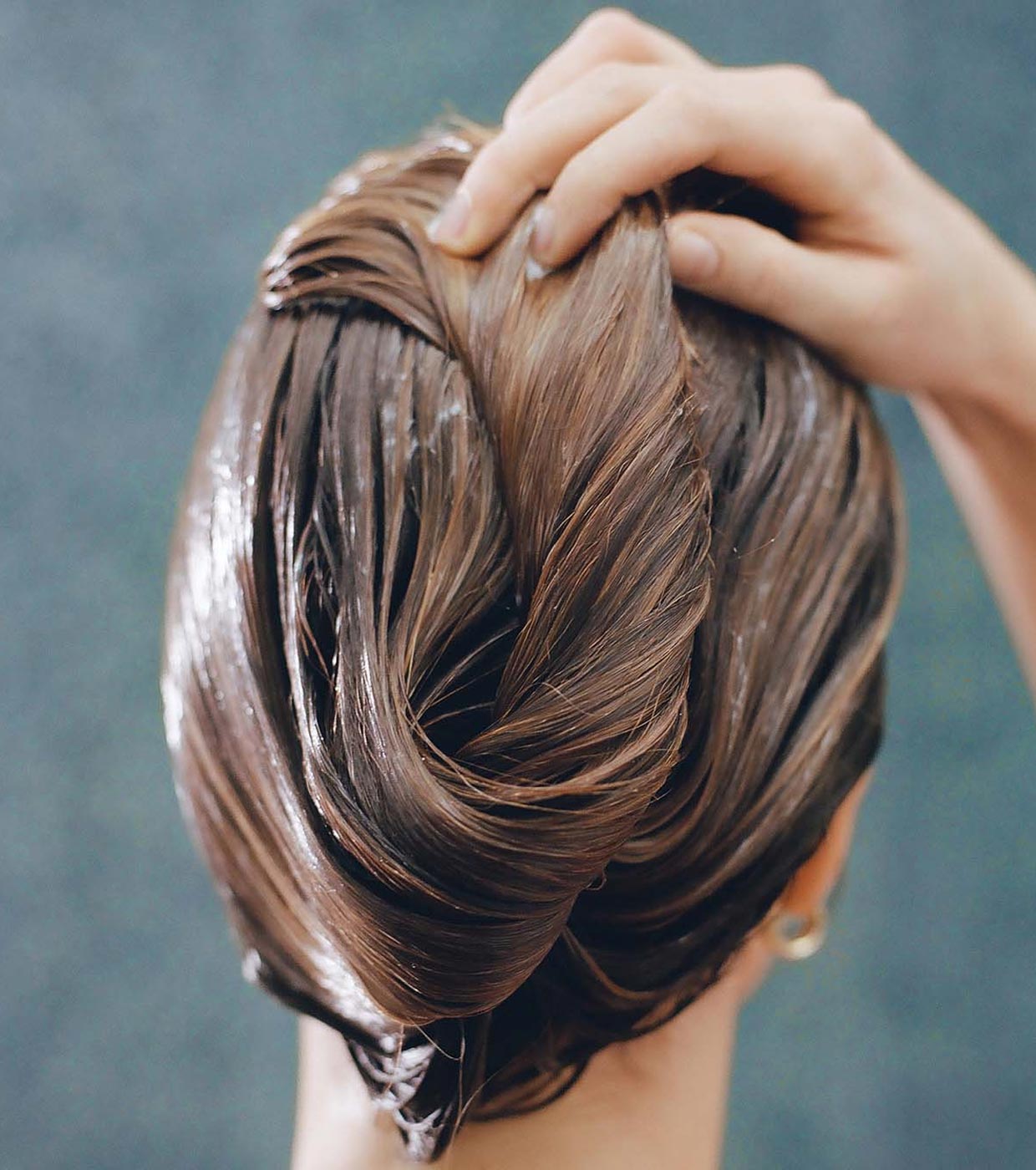 Aufbauende Behandlung: Tragen Sie die Maske vor dem Schlafengehen auf, wickeln Sie Ihre Haare ein und waschen Sie sie morgens wie gewohnt.