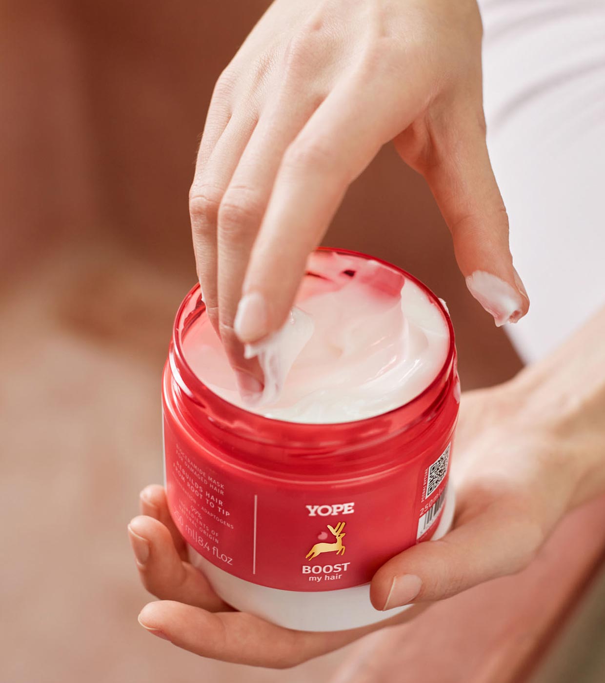 Natürliche Bioceramid-Maske für strapaziertes Haar Boost My Hair von Yope.
