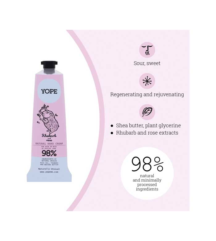 Die natürliche Rhabarber- und Rosen-Handcreme von Yope wurde für trockene Haut entwickelt, die eine starke Regeneration benötigt.
