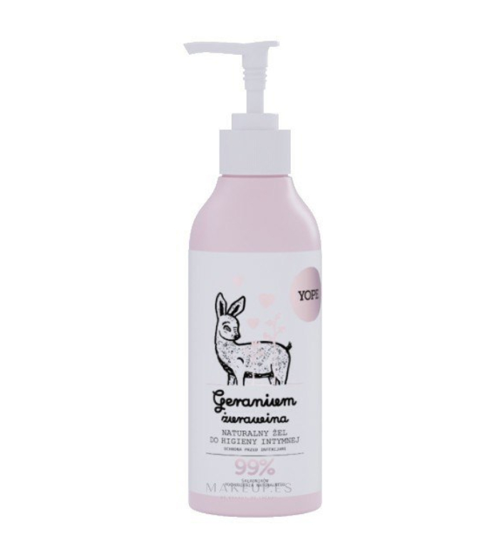 Yope Geranium and Cranberry Intimate Gel ist ein zartes, schäumendes Gel, das das Mikrobiom sanft stärkt, um empfindliche Bereiche vor Reizungen zu schützen.