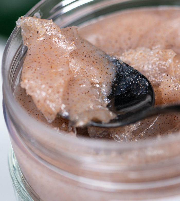 Dieses ökologisch formulierte Peeling hat eine dicke Konsistenz, die effektiv exfoliert.