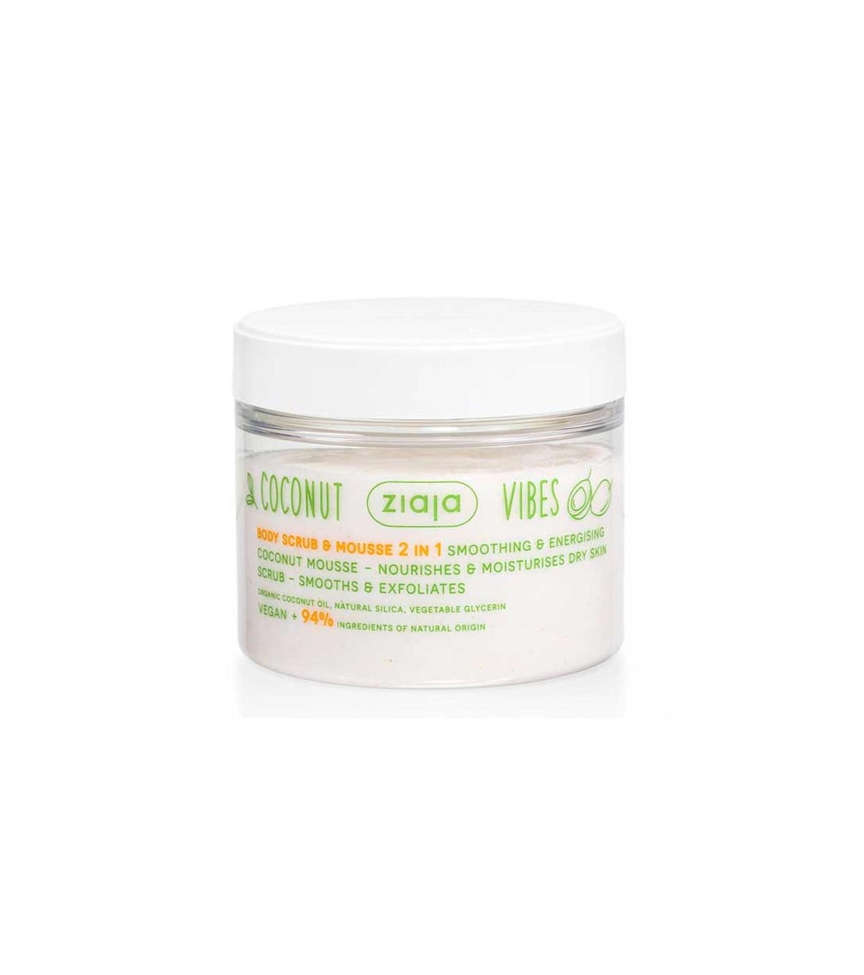 2-in-1-Körperpeeling und Mousse mit Kokosnussnoten, Coconut and Orange Vibes von Ziaja.