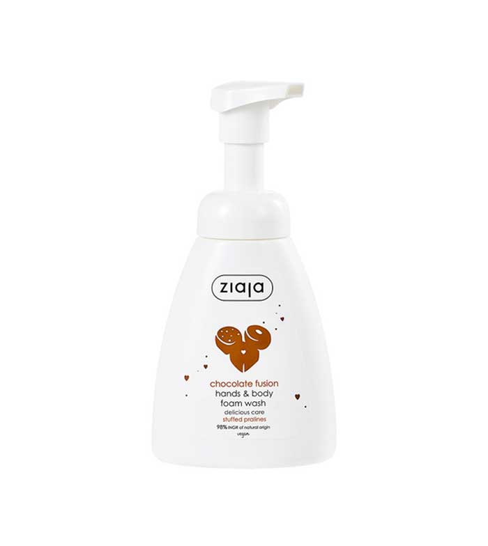 Schaumseife für Hände und Körper Chocolate Fusion von Ziaja mit einem unglaublichen Aroma von Pralinenschokolade aus der Delicious Skin Care-Linie.