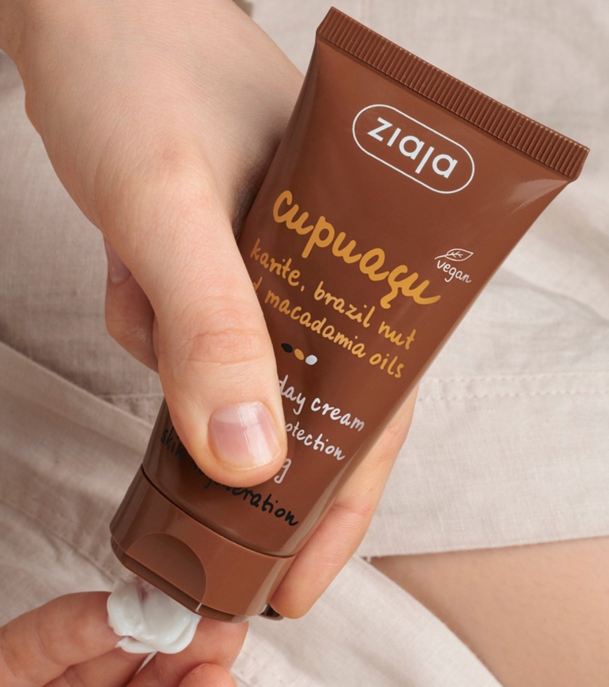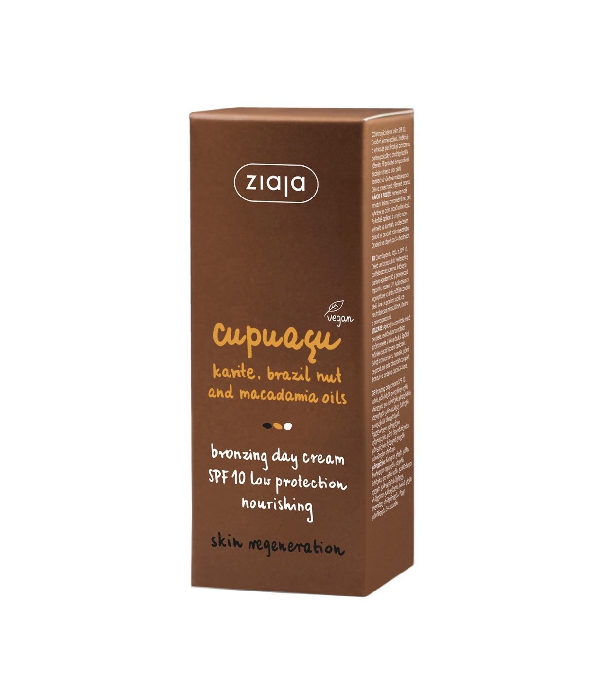 Die Ziaja SPF10 Cupuaçu Selbstbräunungs-Gesichtscreme ist leicht, zieht schnell ein und bietet UVA/UVB-Schutz mit einem Lichtschutzfaktor von 10 (geringer Schutz).