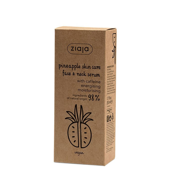 Das koffeinhaltige Gesichts- und Halsserum Ziaja Pineapple hat eine leichte und konzentrierte Formel mit einer Geltextur, die die Haut effektiv revitalisiert.
