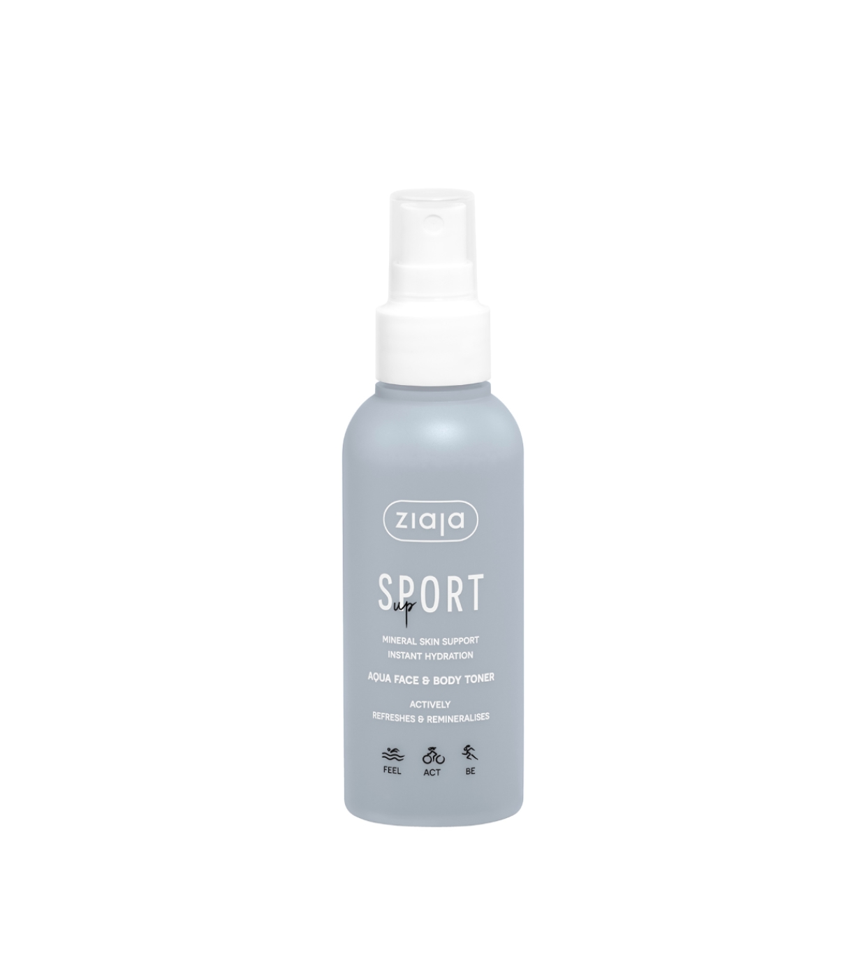 Das Gesichts- und Körperwasser Ziaja Sport bietet sofortige und langanhaltende Feuchtigkeitsversorgung für bis zu 24 Stunden mit nur einer Anwendung.