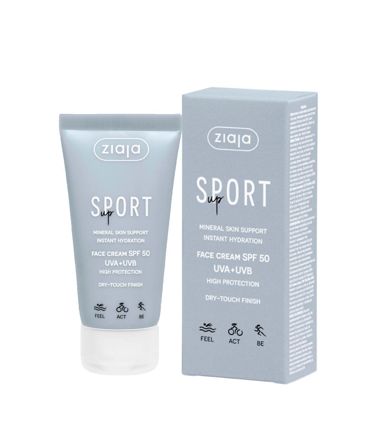 Ziaja Sport Die leichte Gesichtscreme mit LSF 50 spendet sofortige Feuchtigkeit und bietet Breitband-Sonnenschutz. Sie schützt Ihre Haut vor UVA-, UVB- und blauem Licht (HEV), das von elektronischen Geräten ausgestrahlt wird.
